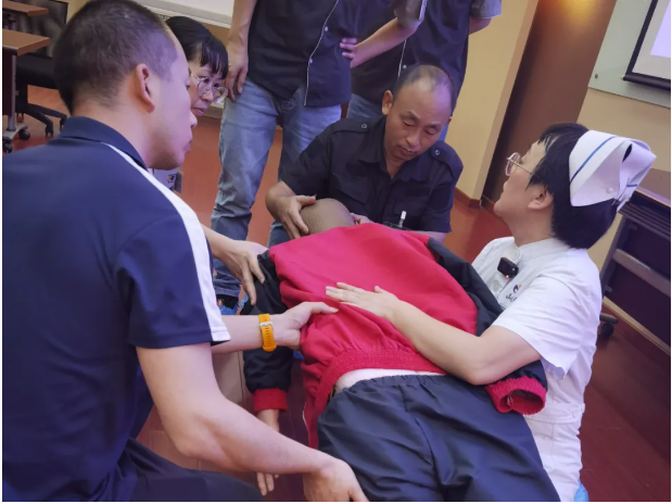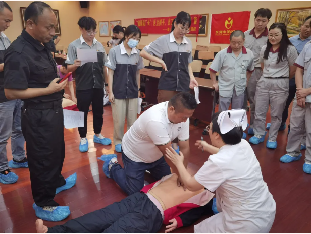 肺復蘇成功關鍵要素等理論知識,然后實操了海姆立克急救法、心肺復蘇操作并現場進行了考核。加強企